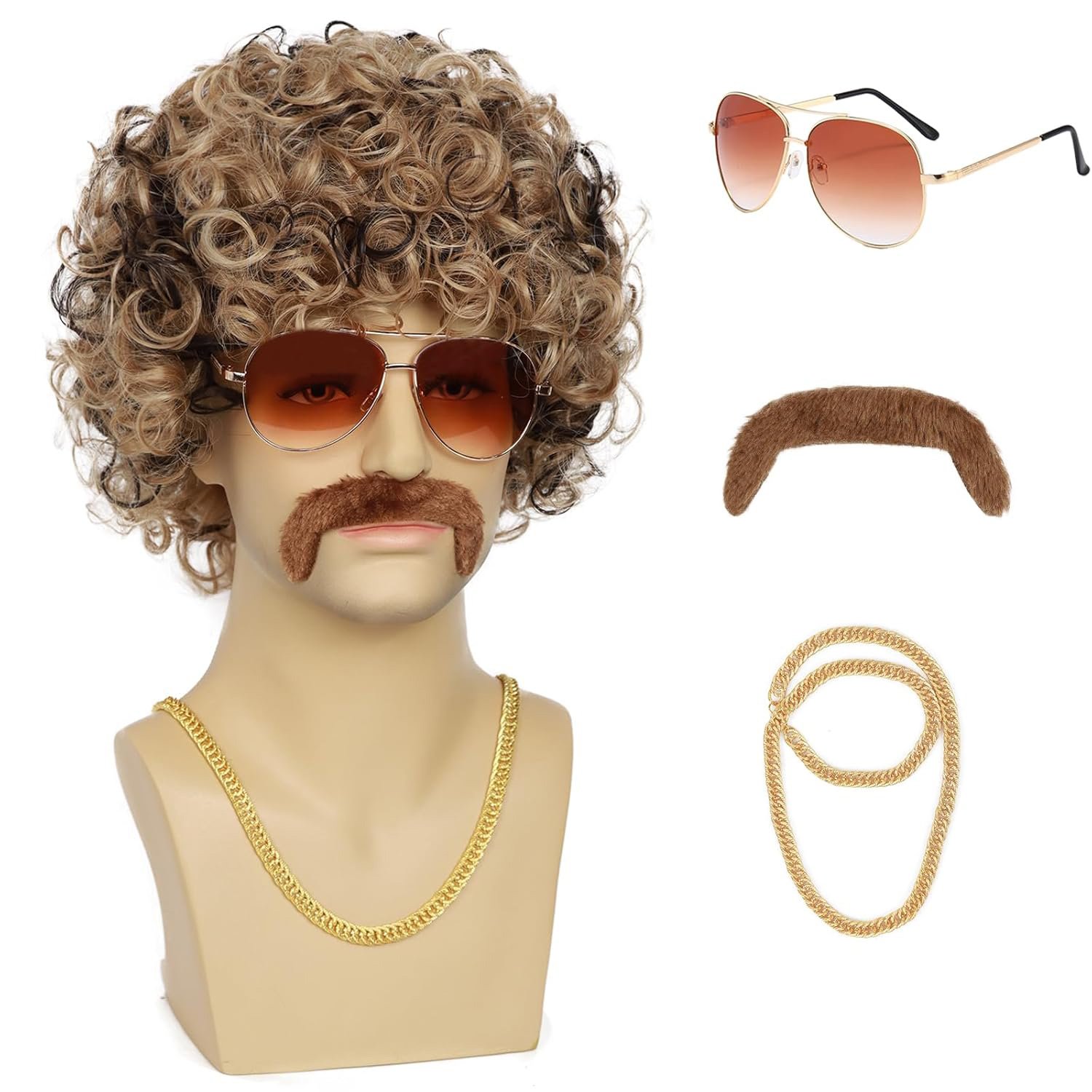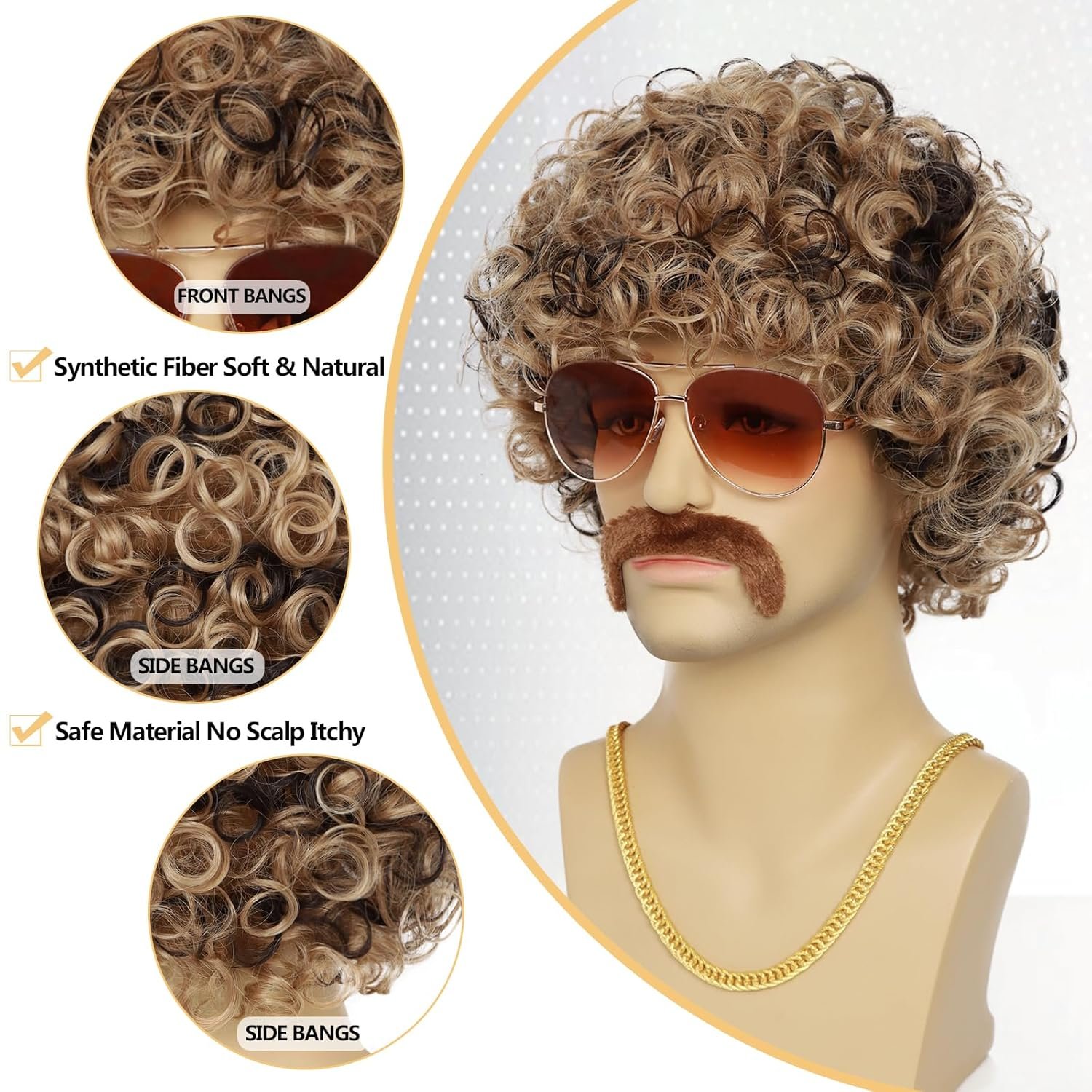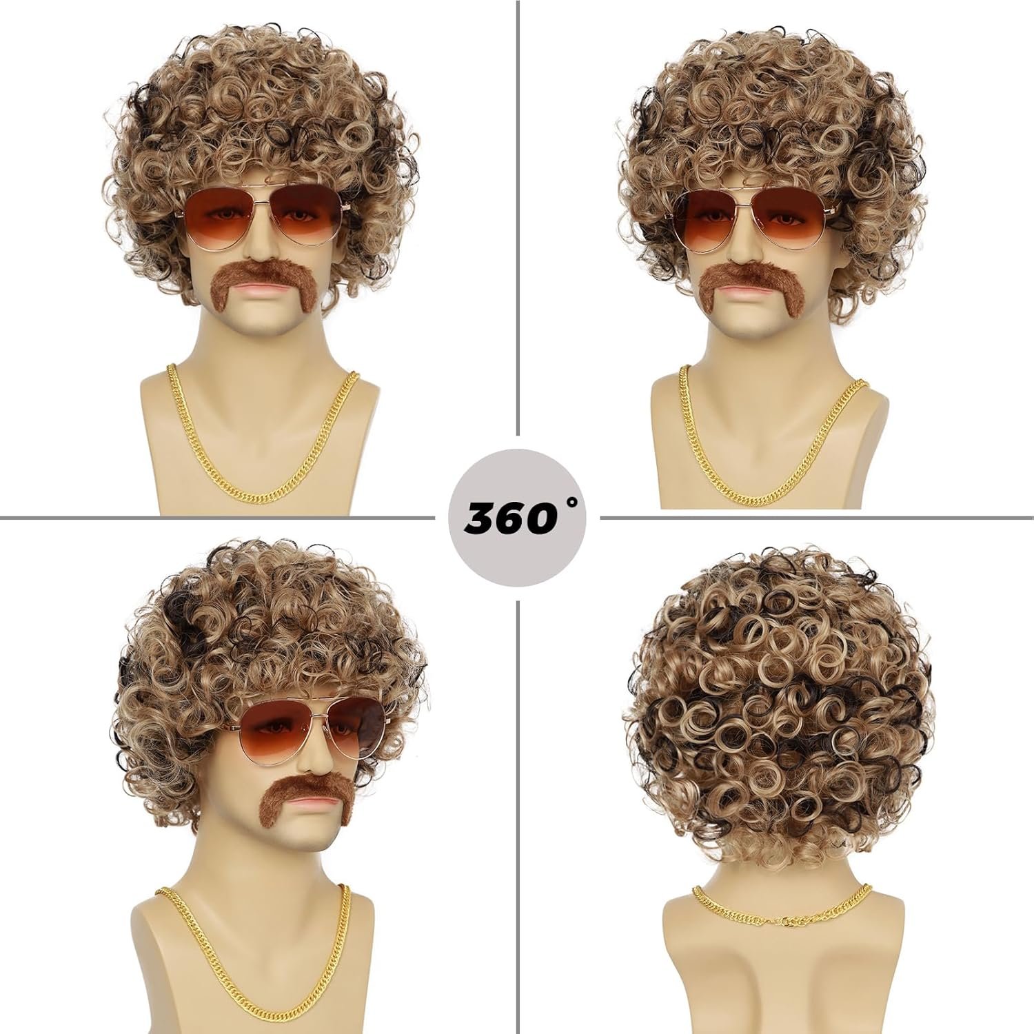 Disco 70s 80S Cosplay Wig Mens Afro Curly Wig Brown Halloween Costume Accessory