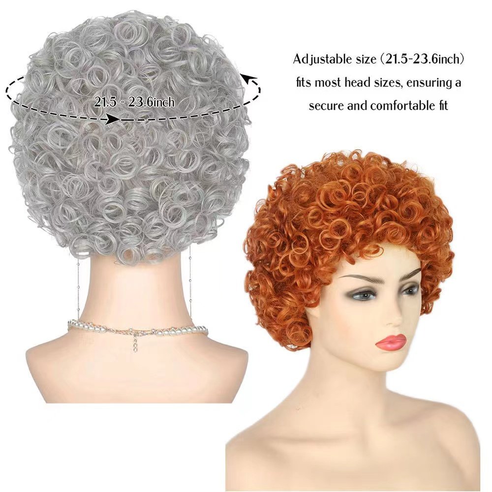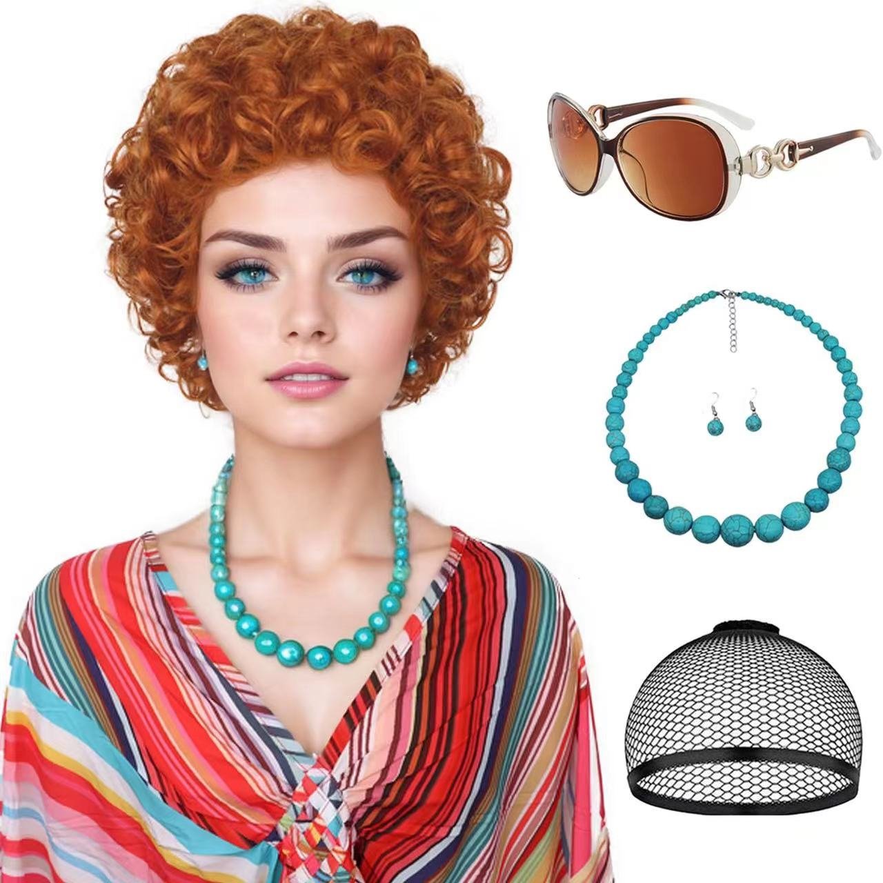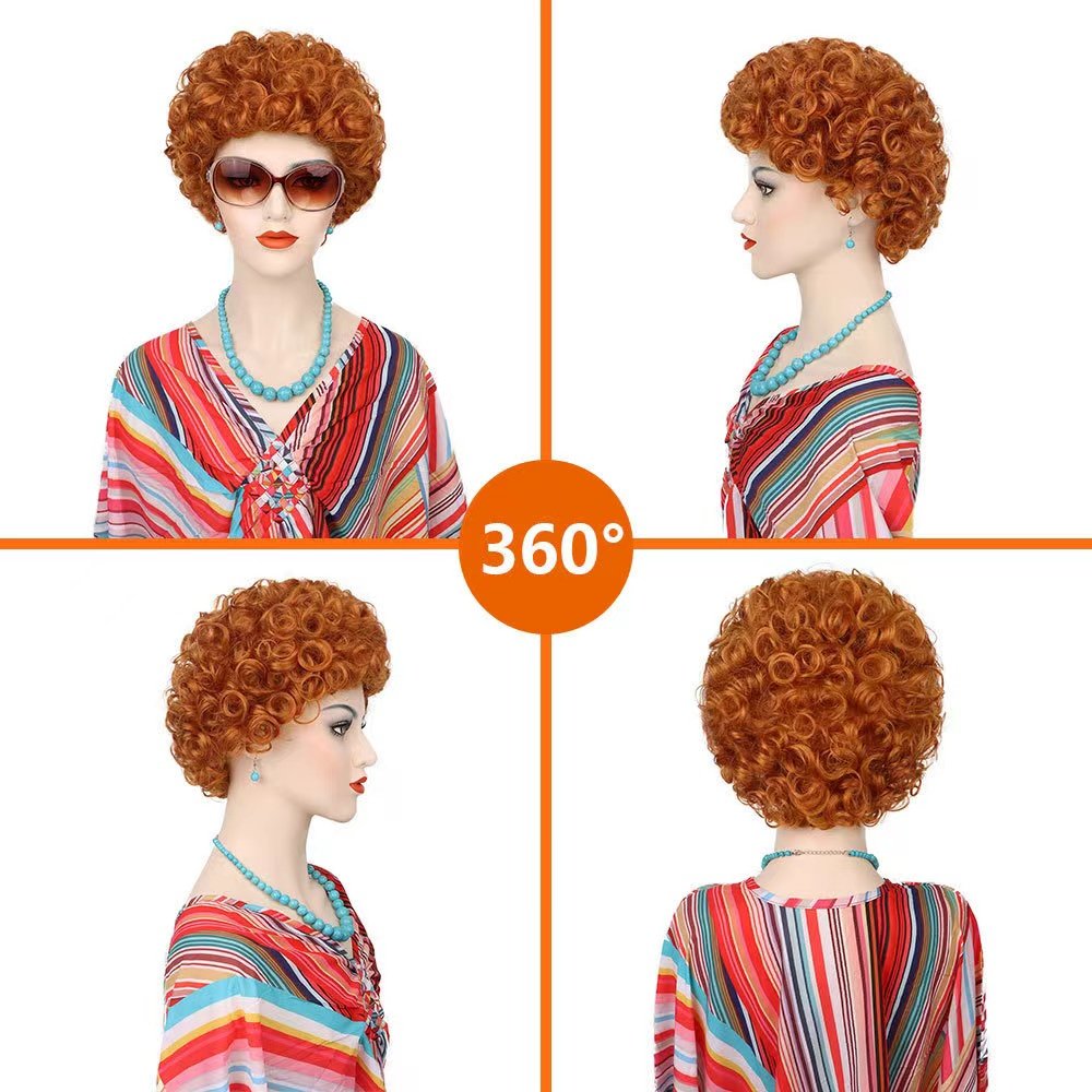 Mrs Helen Roper Cosplay Wig with Glasses and necklace Orange